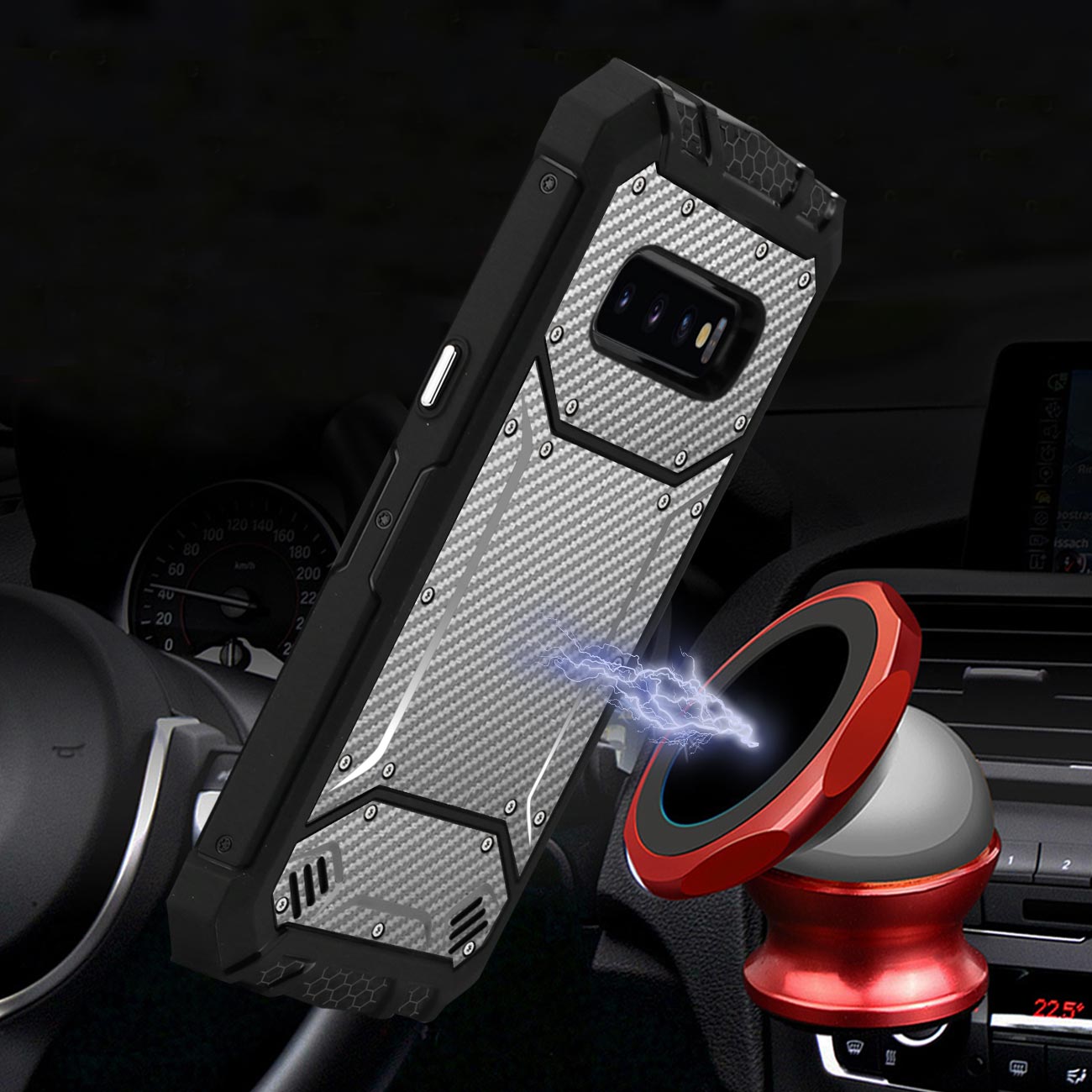 - Exclusive invisible built-in magnetic metal plate designed phone protector. easy to connect and remove the phone from the magnetic car mount & holder by one hand when driving.