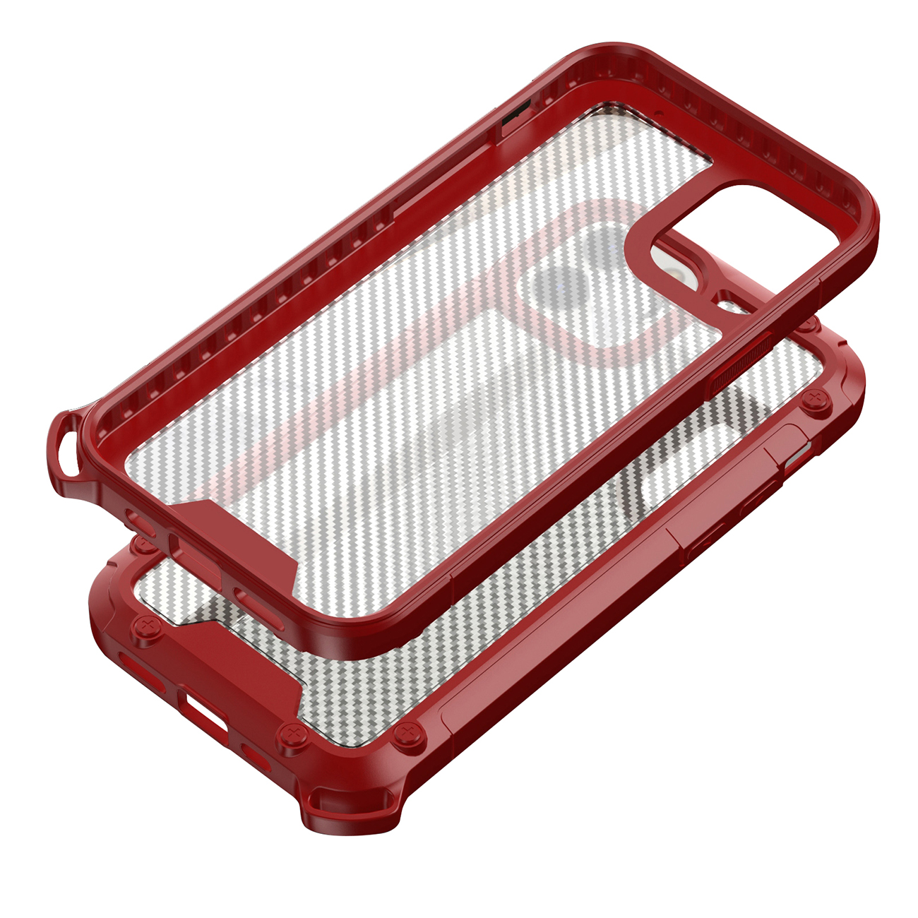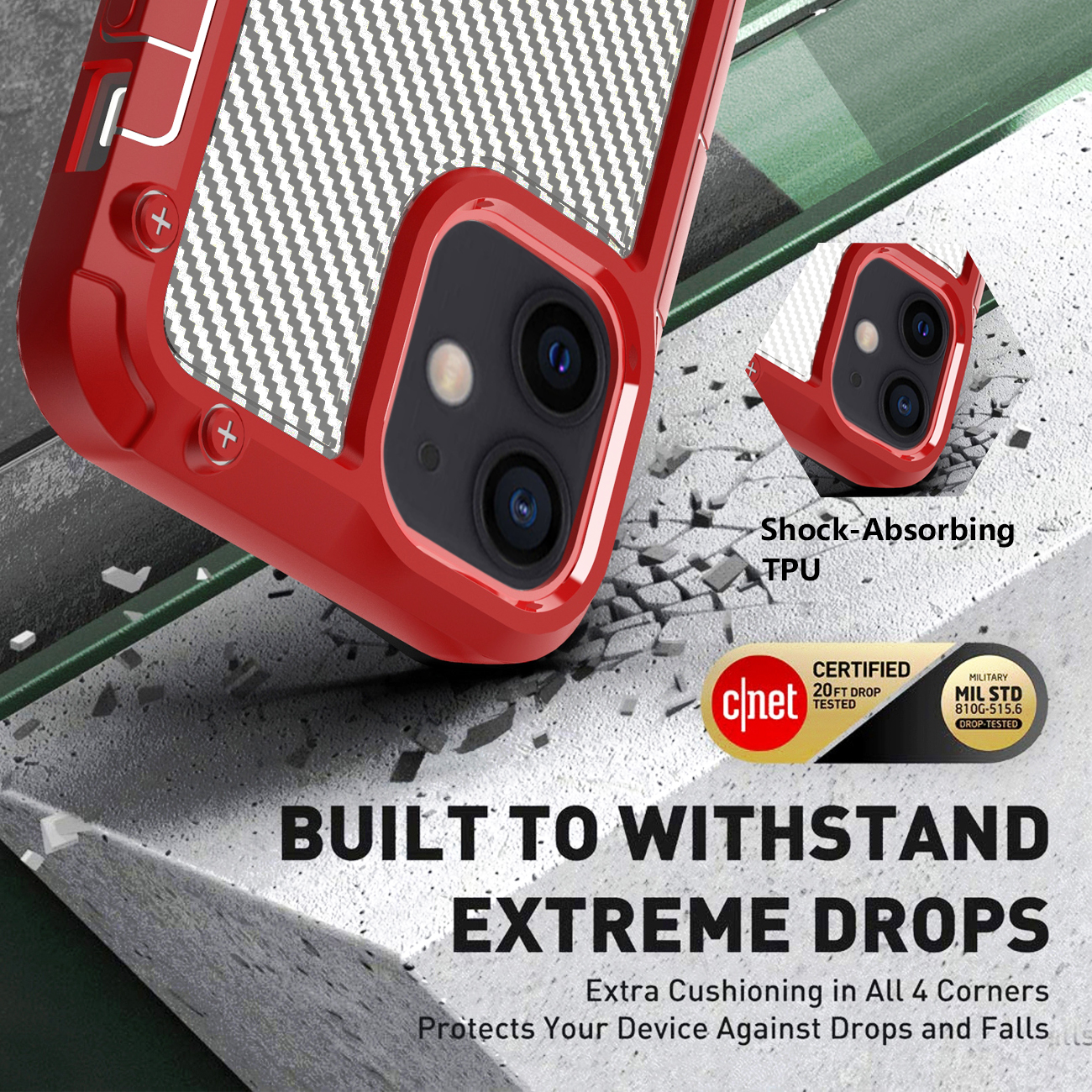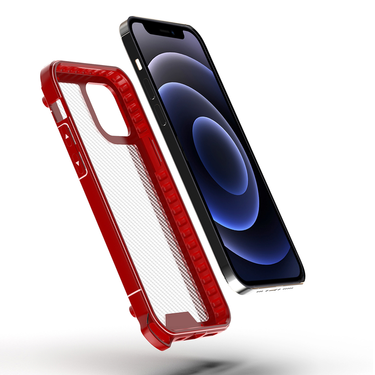 Reiko Shockproof PC Bumper Case With Carbon Fiber Pattern In Red For iPhone 12 Mini
