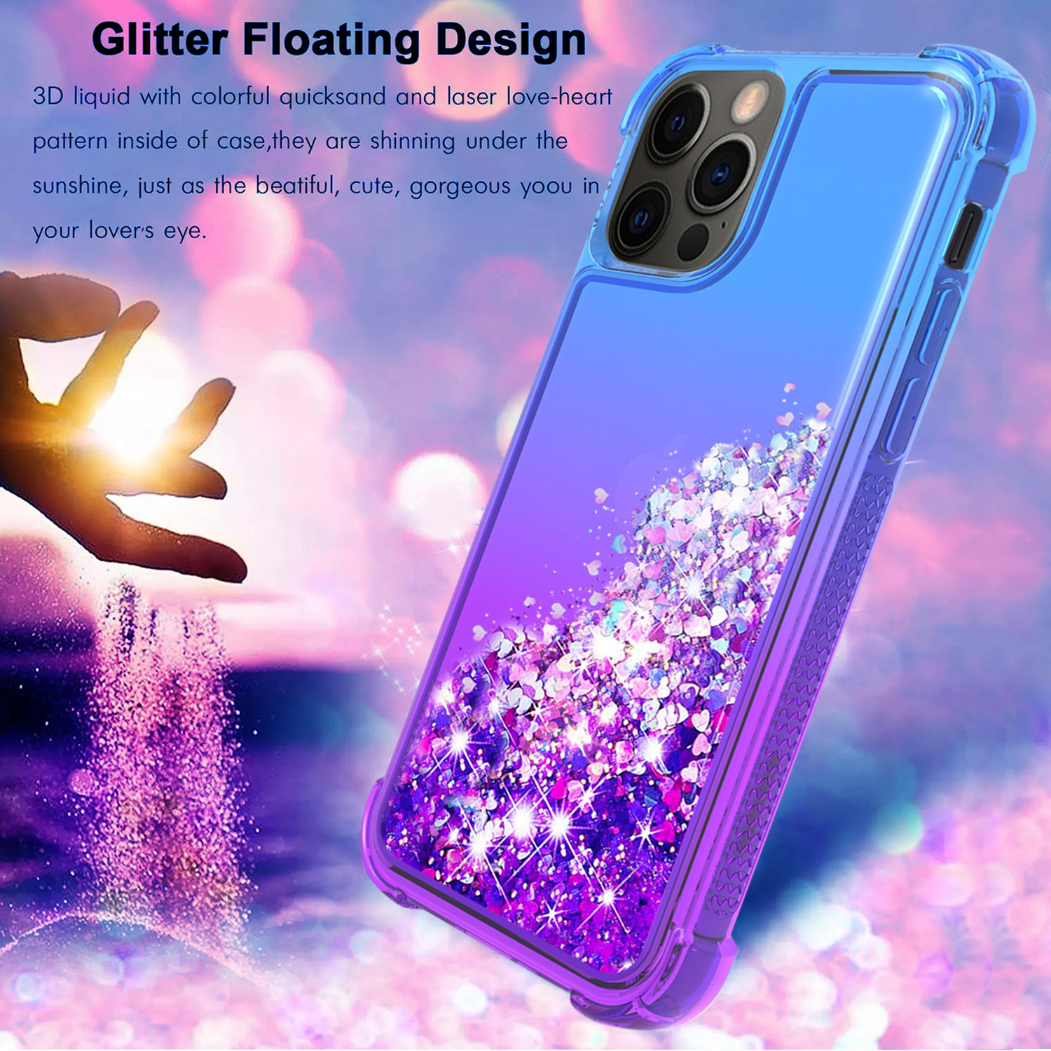 • - Fashionable style: Cute, high quality and durable transparent TPU back case,infused with liquid and glitters,tightly sealed process.The inside glitters float freely when you move your phone,bring much more fun to you;make your phone special and gorgeous.